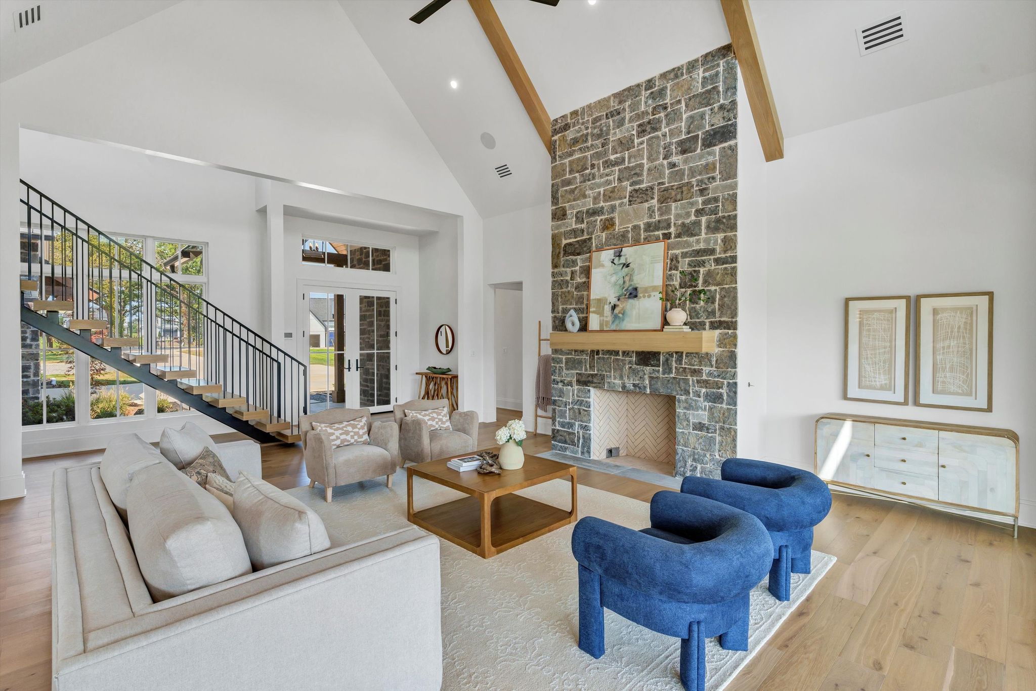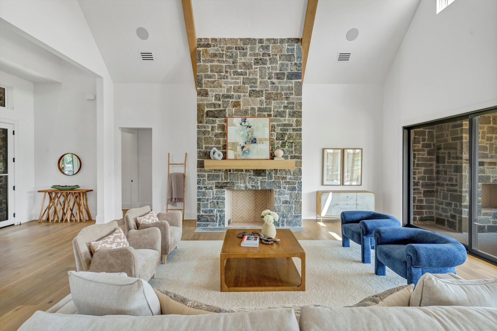 21.5’ cathedral ceilings, an elegant floating staircase, rich European White