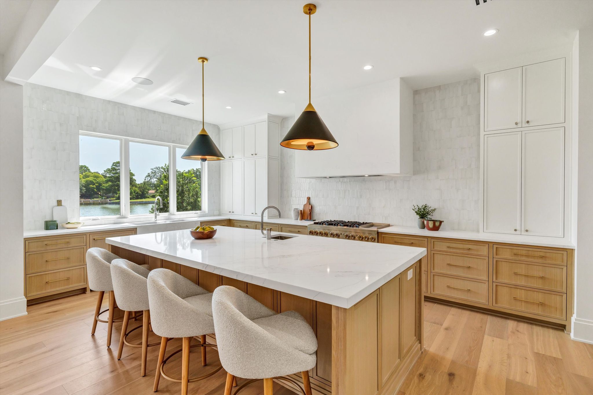 Oak floors set the stage for a breathtaking open-concept great room. The chef's