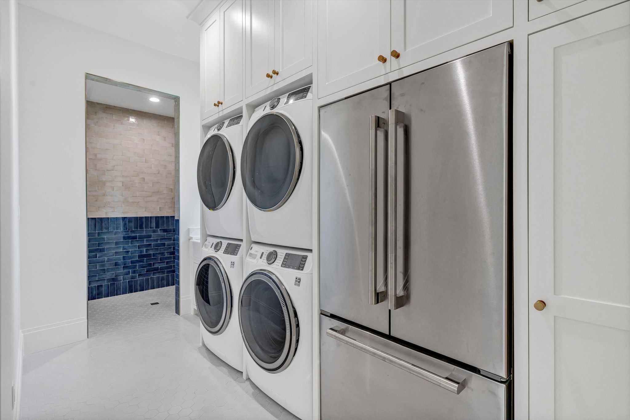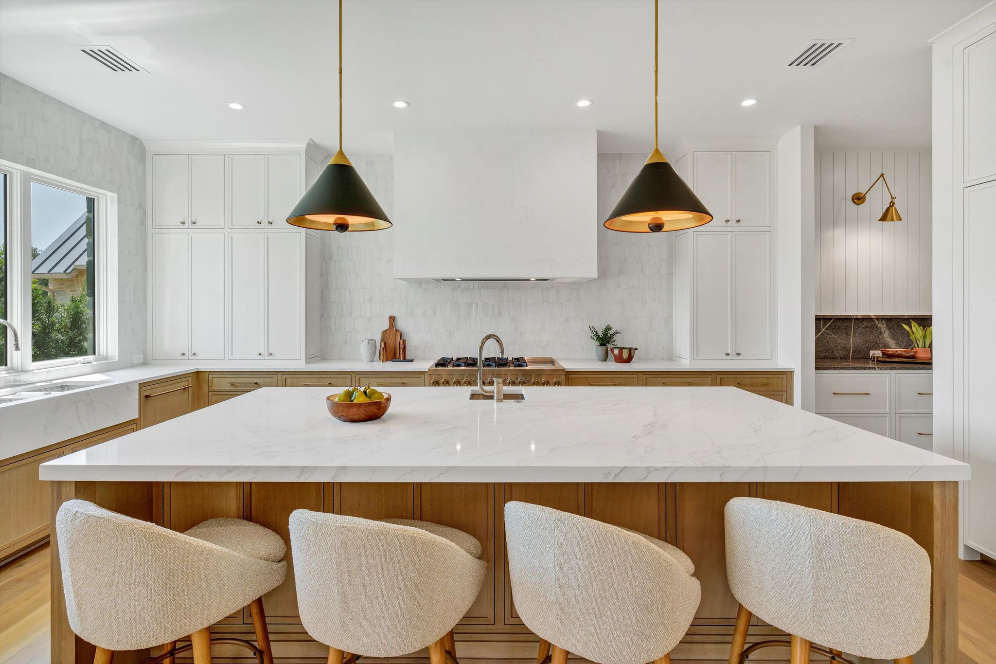 refrigerator and 30in freezer, and custom cabinetry in a striking mix of